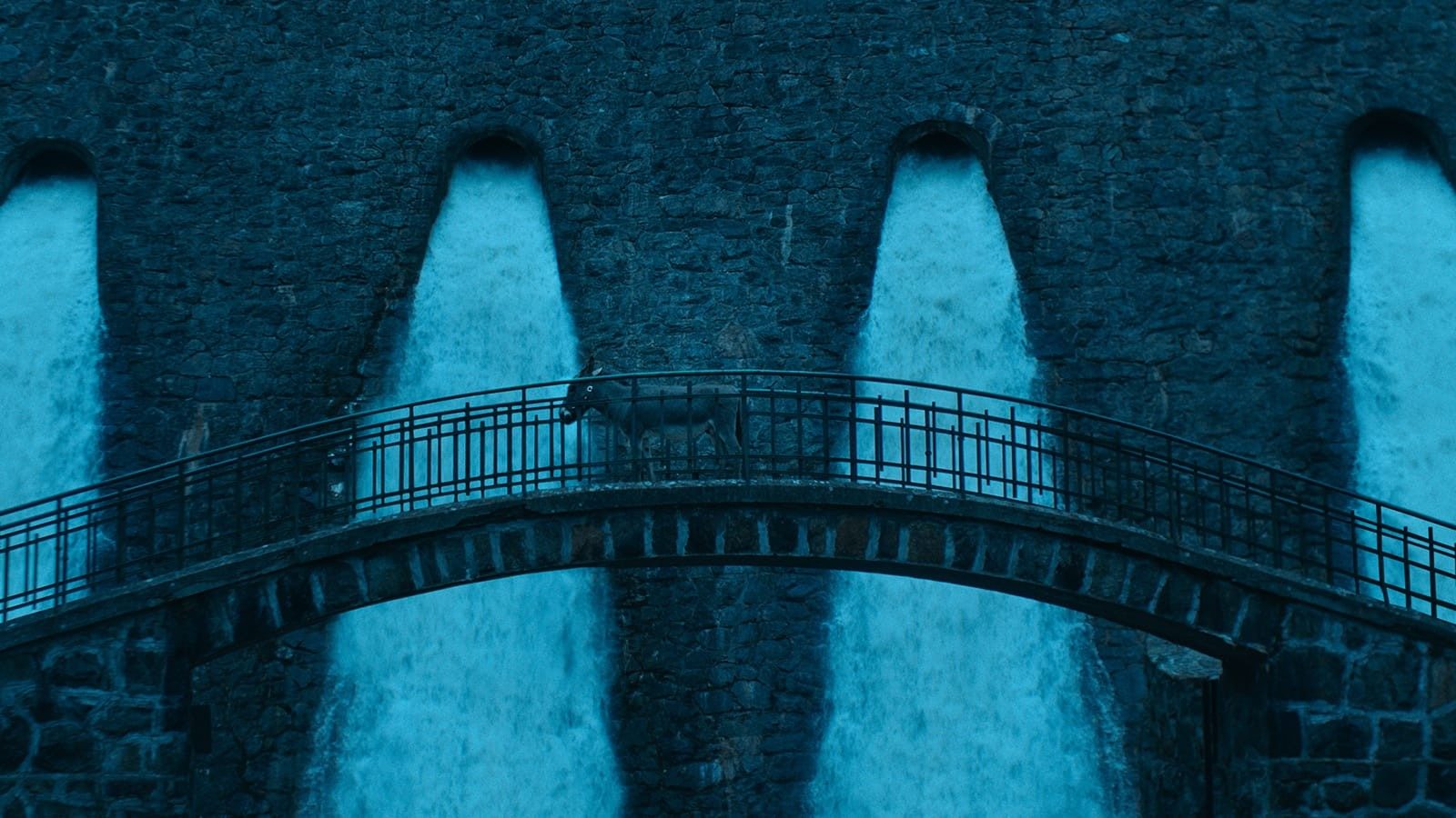 Trascinato, catturato, rapito, costretto ad assistere alla morte dei propri simili, EO viene collocato dall’utilitarismo umano in spazi geometrici – lunghi corridoi, oppure stalle rigidamente divise in settori rettangolari; camion orizzontali dove gli animali vengono ammassati, percorsi circolari (che Skolimowski inquadra dall’altro, per mettere in evidenza il contrasto tra la fredda matematica e i corpi reali, disordinati delle bestie destinate al macello). Questo destino di cattività, immortalato dal regista in quadri brevi, frammenti di quotidianità disseccata e funebre, si alterna a fughe impossibili colme di vita e bellezza. EO incede lungo strade vuote, “parla” con i pesci intrappolati in un acquario, cammina dolcemente su un ponte, incorniciato da un turbine d’acqua, di suoni, di abissi densi e incomprensibili. Ogni volta che EO sfugge al dominio umano, la geometria si spezza e la vita acquisisce nuovamente un tempo sospeso – il tempo dell’aria, delle stelle, della bruma che avvolge il mattino. Troppo puro per questa realtà, EO sembra espulso da un paradiso animale al quale la sua anima innocente cerca di far ritorno: camminare sulla terra, tra scherni, frustate e percosse, è la sua parabola di santità, cui partecipiamo tra le lacrime – le stesse lacrime versate da Skolimowski quando, ragazzo, assistette alla proiezione di Au hasard Balthazar (1966) di Bresson.