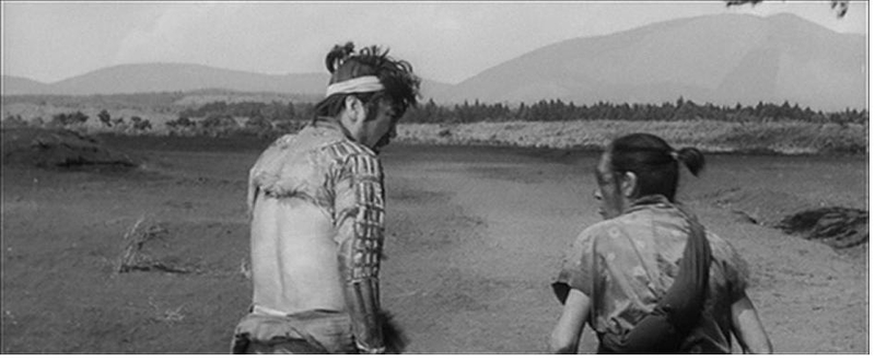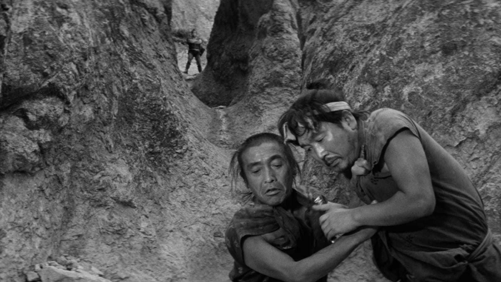 La Fortezza Nascosta è un’esperienza epica e lunare, collocata in un limitare di difficile definizione: luogo dell’immaginazione? Spazio della Storia che riemerge dalle polveri per stendersi davanti ai nostri occhi nella sua natura astratta e aliena? Kurosawa realizza uno dei suoi jidaigeki più personali, abdicando al realismo e stilizzando ambienti e personaggi. “Le donne, i cavallier, l’arme, gli amori” diventano figure di una moderna mitologia e si muovono tra deserti, rocce e nebbie, in uno stato di costante indefinitezza e privo di riferimenti. Con una immagine inedita e disorientante, il film si apre sui contadini Matashichi e Tahei inquadrandoli di spalle. Ed è meraviglioso che Kurosawa affidi il suo racconto a due personaggi umili, del tutto privi di caratteri eroici o nobili tratti psicologici. Si tratta, piuttosto, di una coppia che richiama ad un passato di cinema slapstick per le numerose gag corporali cui danno vita: in loro si ritrovano tracce dell’ingenuità di Laurel e Hardy o della disarmante sprovvedutezza di Abbot e Costello; modelli di “buddy movie” americano, come del resto è americano quel sentimento di “frontiera” espresso dalle immagini desertiche, allungate in orizzontale per mezzo di un Tohoscope che pone i personaggi ai margini dell’inquadratura e lascia immaginare un infinito fuori campo.