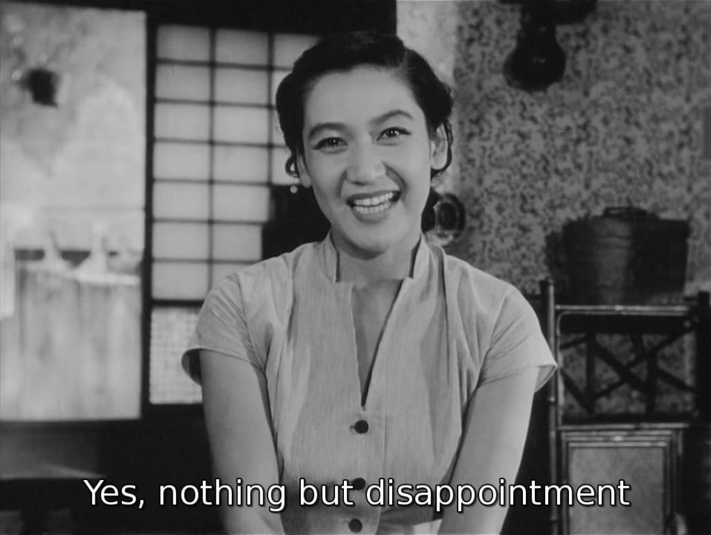 “La vita non è una delusione?” Chiede Kyoko, la sorella minore, a Noriko in Viaggio a Tokyo. “Sì, una vera delusione”, risponde sorridendo Noriko. I (mezzi) primi piani che Ozu dedica alle due attrici in questa scena sono pieni di grazia e di luce. Il regista coglie qualcosa di unico, un sentimento indefinibile e sospeso tra la dolcezza del sorriso di Hara e la semplice evidenza della sua risposta. In fondo ci chiediamo: può essere davvero così triste la vita, se esiste un sorriso del genere? Le sfumature sprigionate dalla scena sono come una lieve ebbrezza. Ozu trascende la semplicità del momento quotidiano per consegnarci intatta la luce dei sentimenti umani e il mistero di un tempo interiore, un presente che pare stendersi sull’intera esistenza.